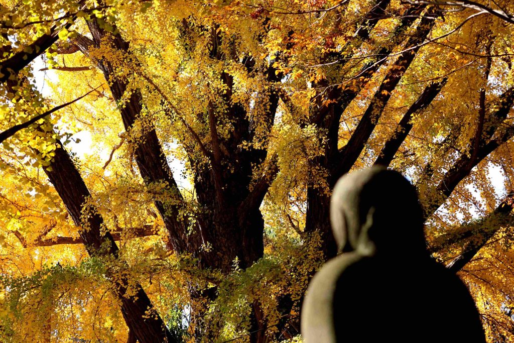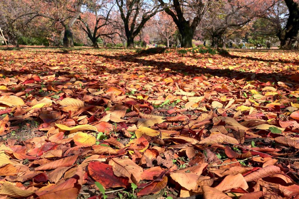 「落葉に舞う」 新宿御苑